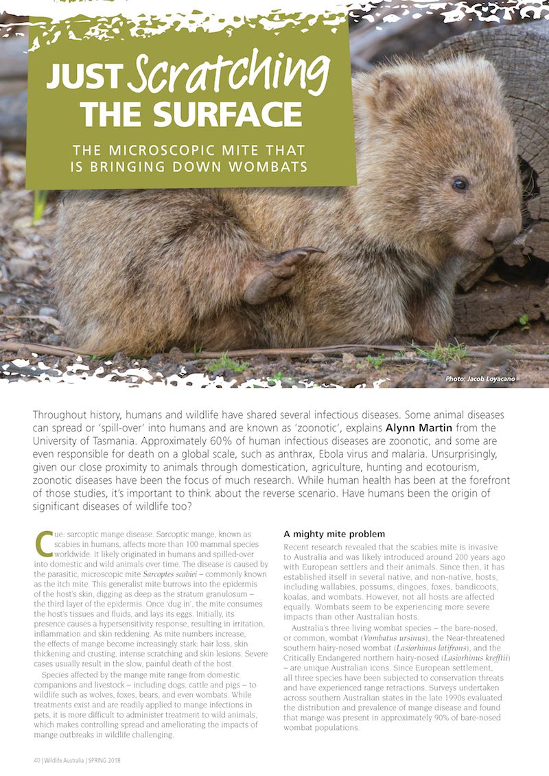 Sarcoptic mange outbreaks have been pinpointed as the cause for population-scale declines in wombat populations. Alynn Martin explains the methods used to monitor and treat affected individuals.