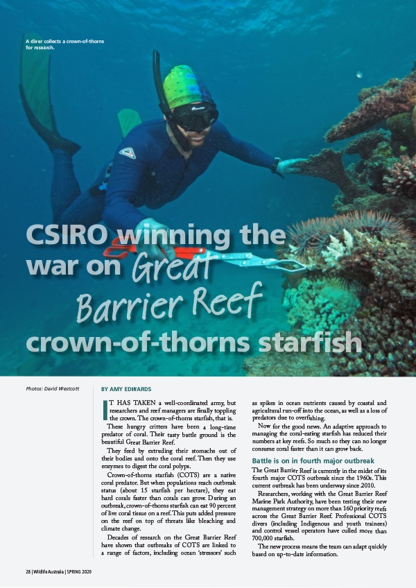 And also in this edition, one of the world’s greatest ecosystems, the Great Barrier Reef, notches up a satisfying win, with CSIRO’s help, over the predatory crown-of-thorns starfish.